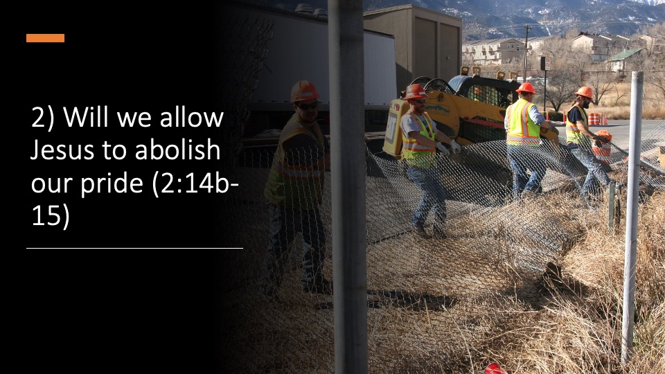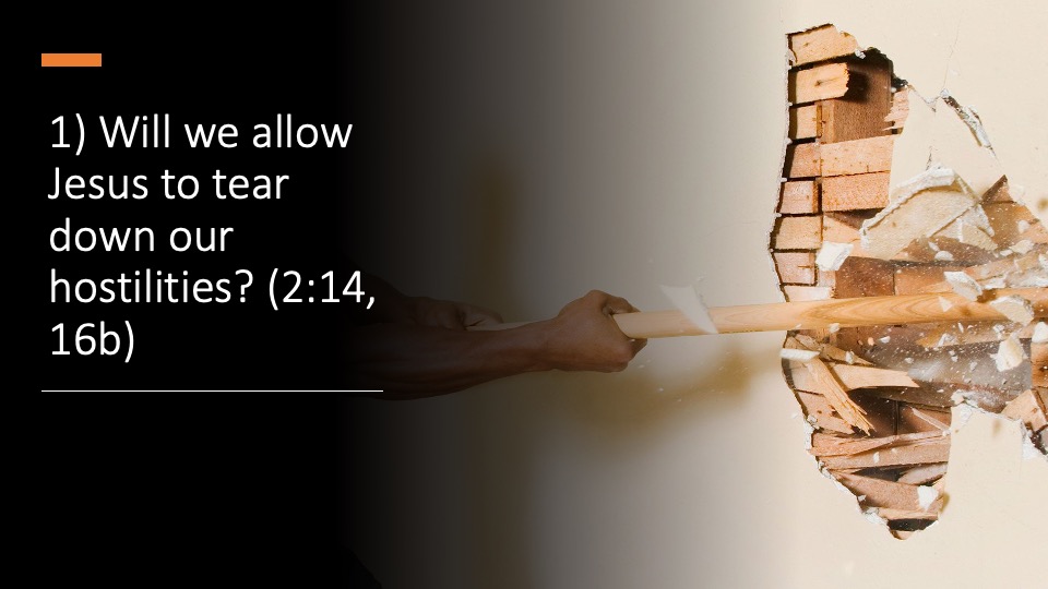 14For he is our peace, who made both groups one and tore down the dividing wall of hostility. In his flesh,15he made of no effect the law consisting of commands and expressed in regulations, so that he might create in himself one new man from the two, resulting in peace16He did this so that he might reconcile both to God in one body through the cross by which he put the hostility to death.17He came and proclaimed the good news of peace to you who were far away and peace to those who were near.18For through him we both have access in one Spirit to the Father.